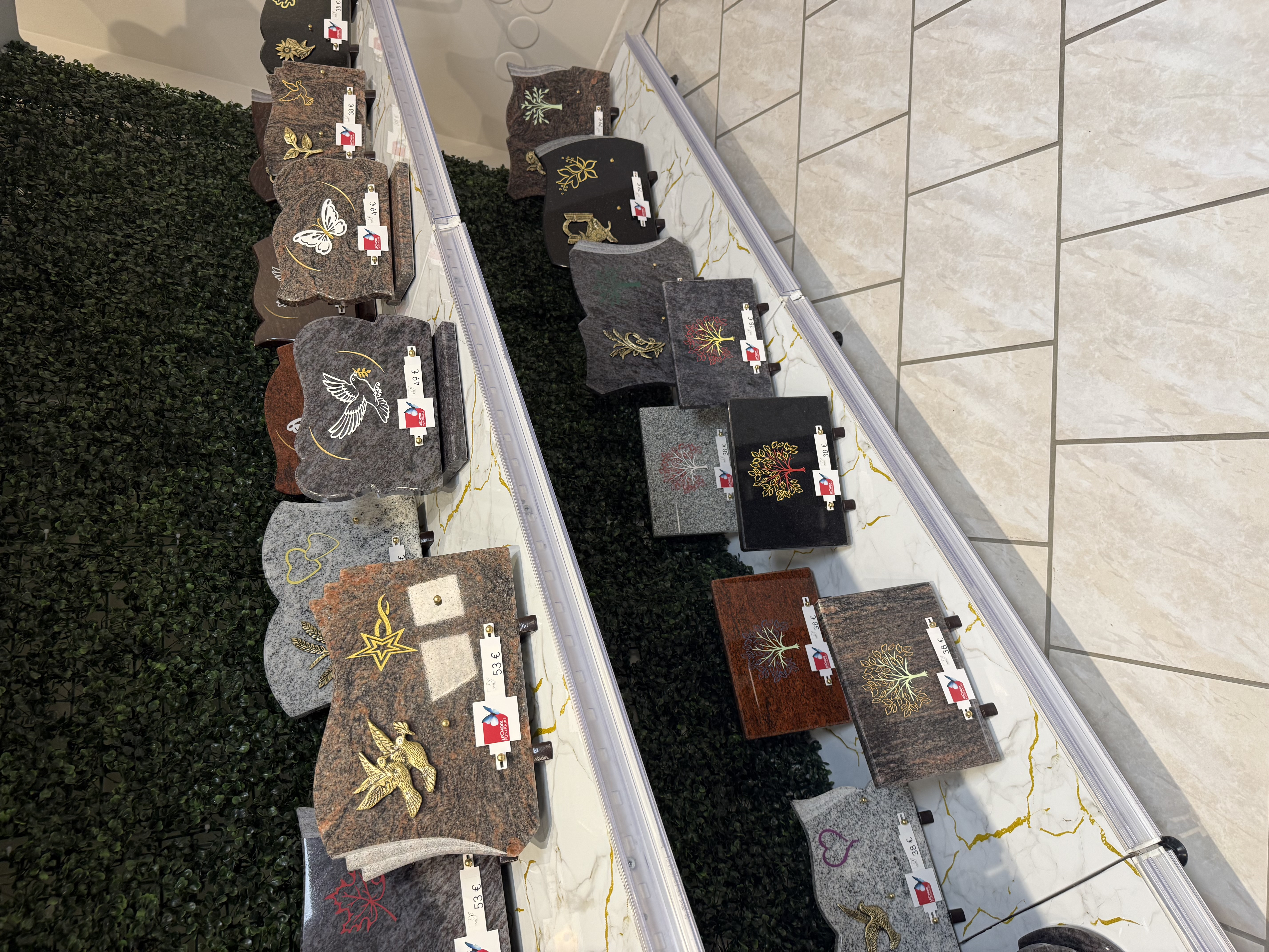 Plaques, Fleurs fraîches, Fleurs artificielles, Ornements, Emblêmes