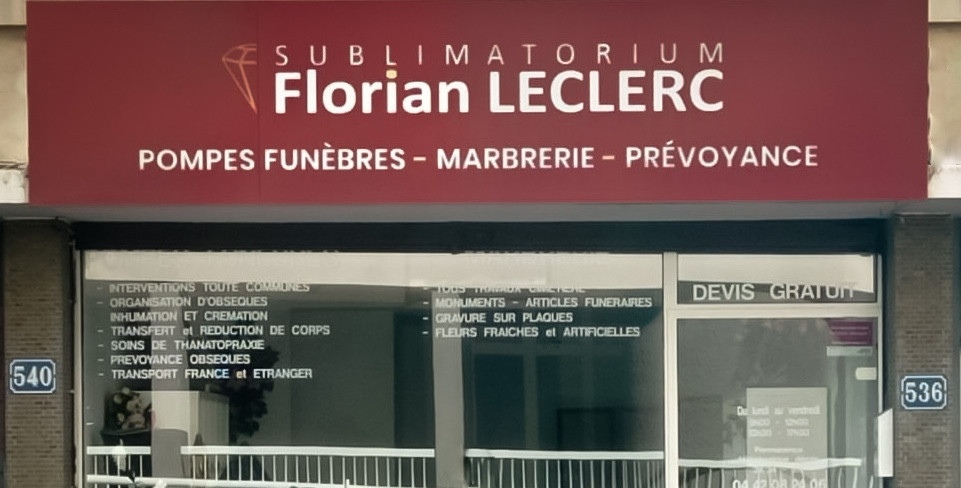 Pompes funèbres Sublimatorium Florian Leclerc, nous accueillons les familles en deuil dans notre agence située au 536 avenue du Président Kennedy, à La Ciotat (13600). Entre les calanques de Cassis et la baie de La Ciotat, nous sommes l'interlocuteur de proximité des familles ciotadenques et des communes voisines (Ceyreste, Saint-Cyr-sur-Mer, Cassis) qui souhaitent être accompagnées avec humanité et sérieux dans les moments les plus douloureux.